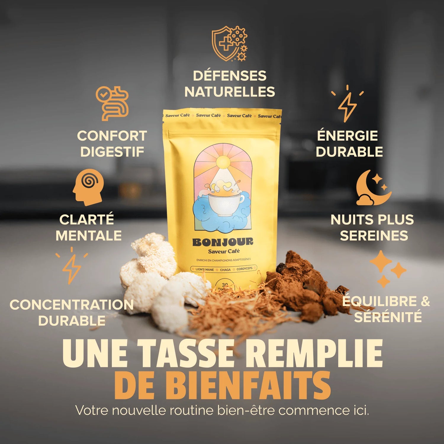 En intégrant Bonjour à votre routine quotidienne, les bénéfices s’installent progressivement : plus d’énergie, une concentration plus nette et un sentiment de bien-être durable.