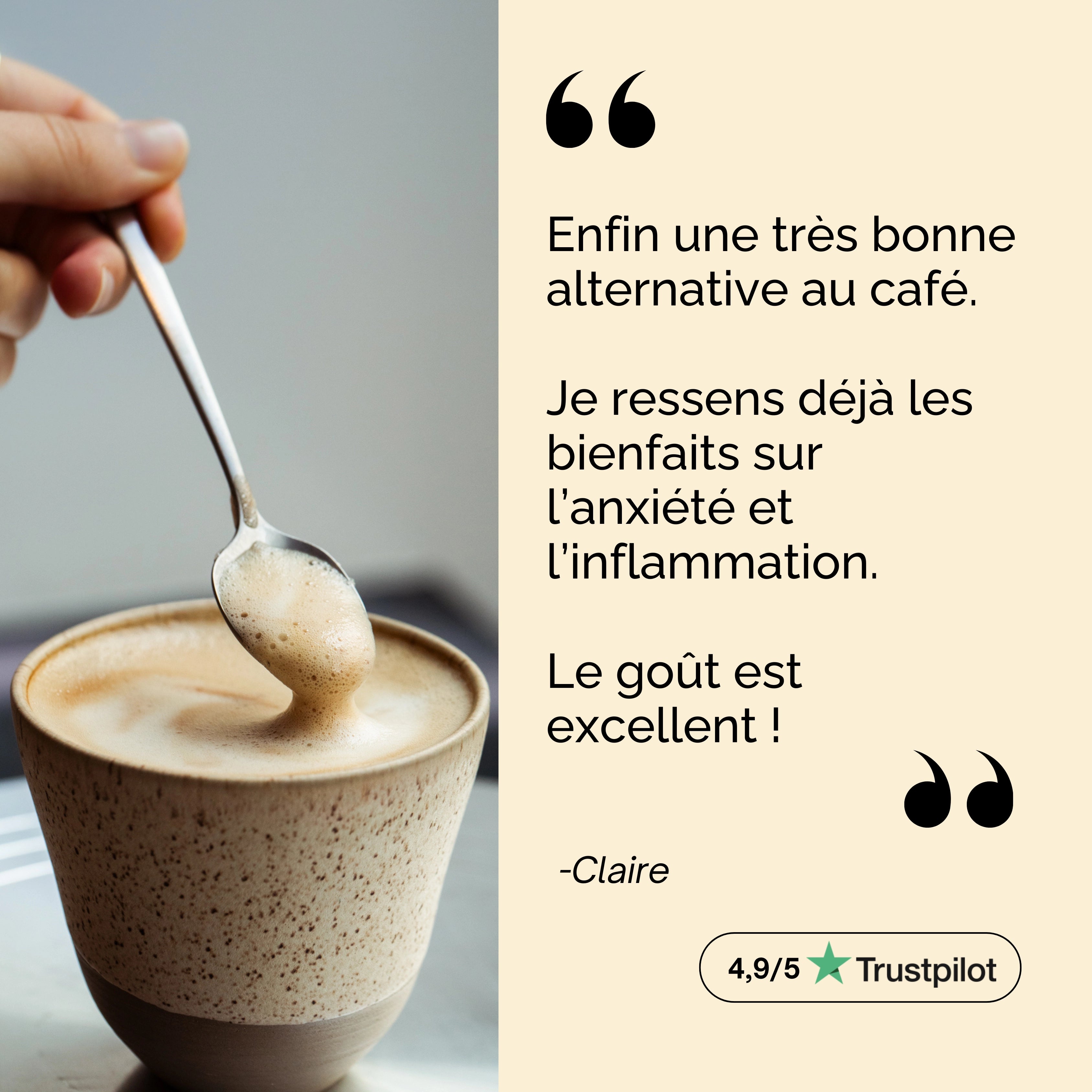 Un goût savoureux de café et de céréales torréfiées parfait pour accompagner une énergie plus stable, une concentration plus claire, un meilleur confort digestif, une vraie sérénité au quotidien et un apaisement naturel quand la journée ralentit.